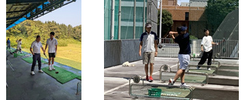 ゴルフ実習の学生たちは、打ちっ放し練習場やコースで新品のドライバー使用する際に壊さないかと心配しながら使用していました。また、メーカーの違うドライバーを使用して打感や飛距離の違い、自分に合うクラブがあることに気づいていました。